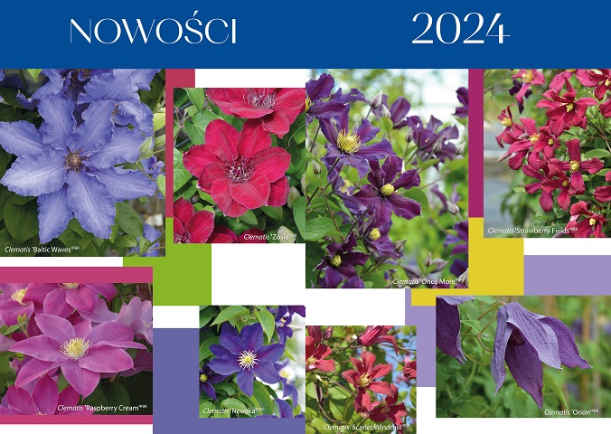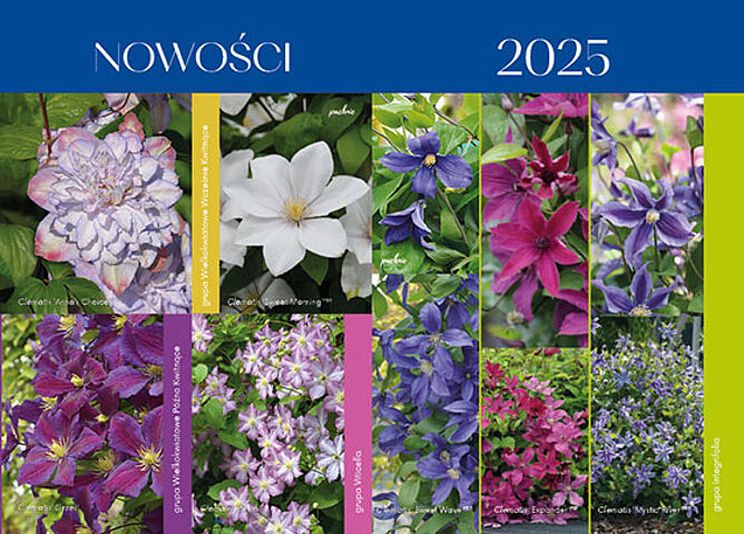 - Clematis 'Polka' ciekawa, obficie kwitnąca odmiana o różowych kwiatach z intensywnie różowymi krawędziami działek; jej kwiaty są podobne do kwiatów Clematis montana